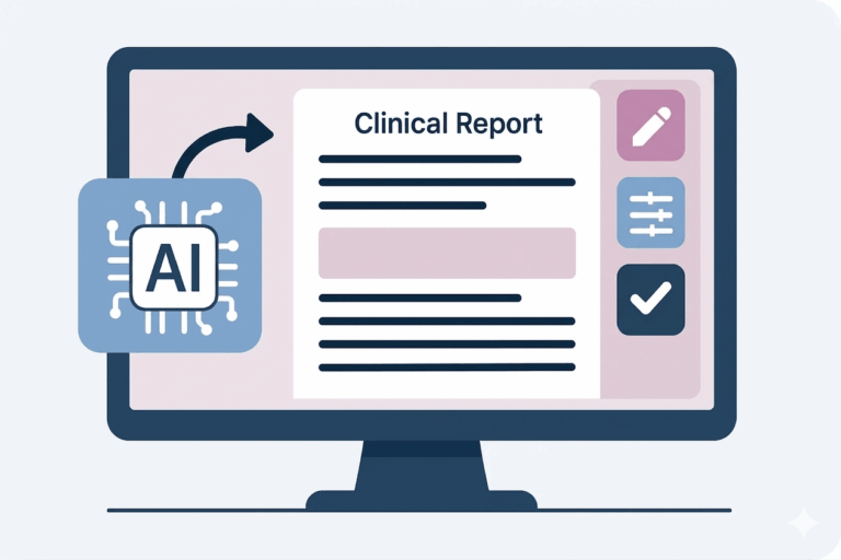 Redacción asistida de informes clínicos, con controles de estilo y estructura.