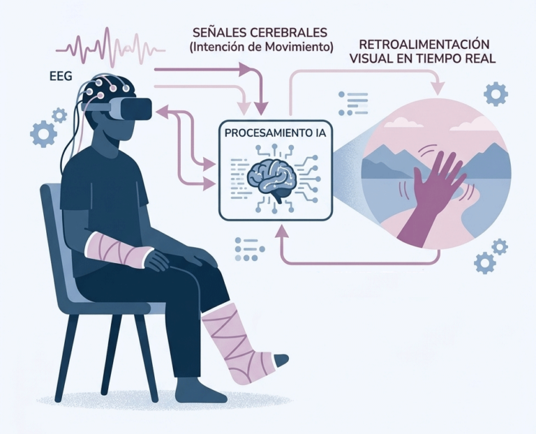 Plataforma de rehabilitación temprana que usa EEG, IA y realidad virtual para convertir la intención de movimiento en experiencia inmersiva